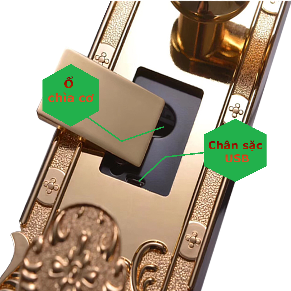 - Thiết kệ Chìa cơ và chân sạc khẩn cấp dự phòng trong trường hợp khóa hết Pin.